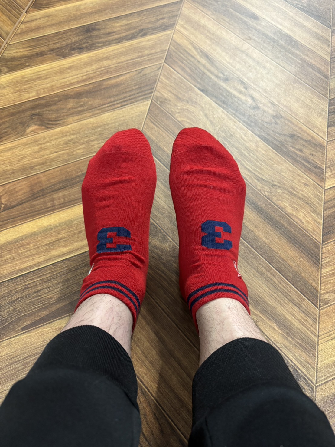 いただいた真っ赤な靴下を履いて走り回ります!笑